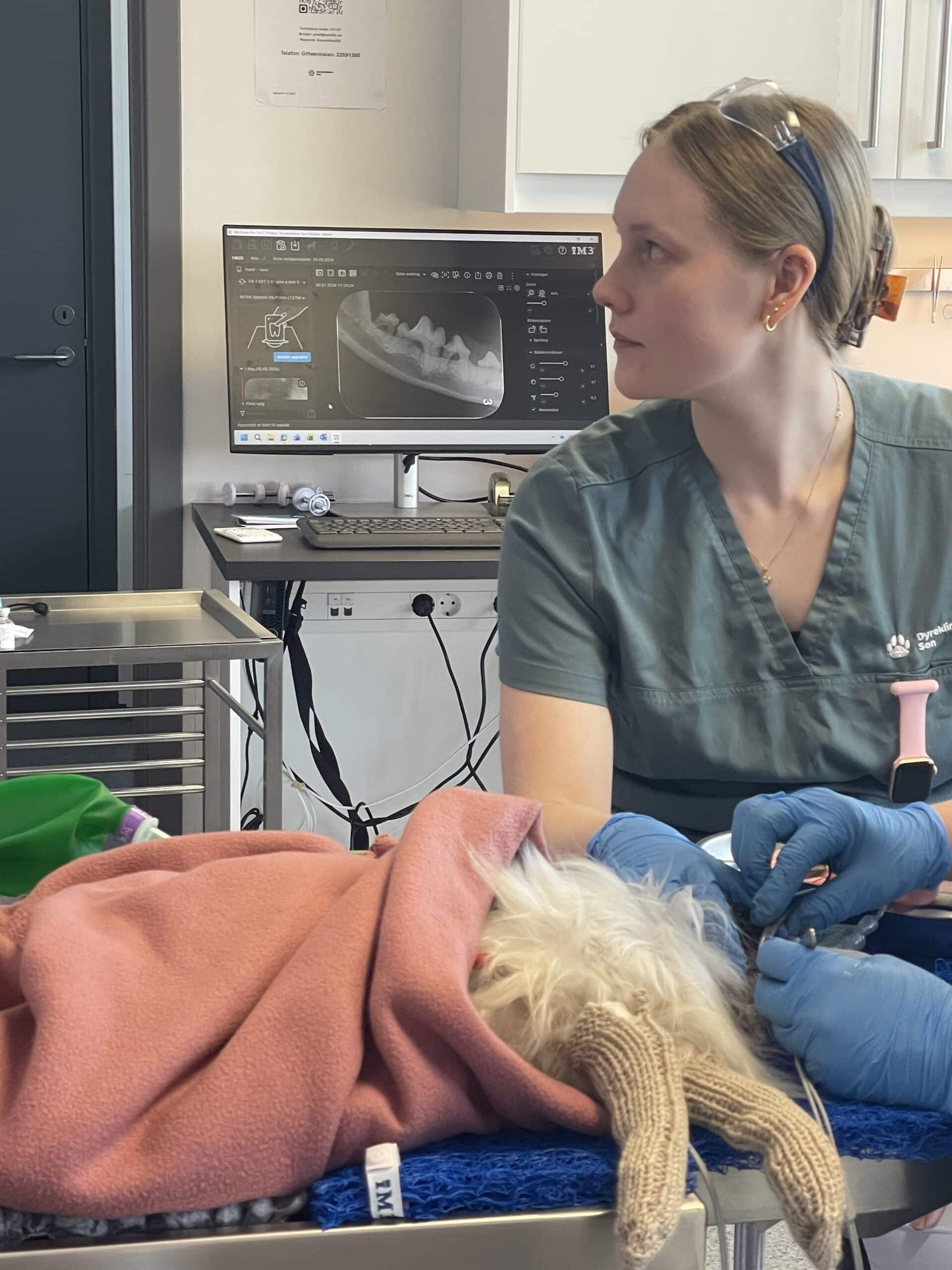 - Trygg narkose og overvåking: Vi tilpasser narkosen individuelt for hvert enkelt dyr. Under hele inngrepet blir pasienten kontinuerlig og nøye overvåket av en autorisert dyrepleier.